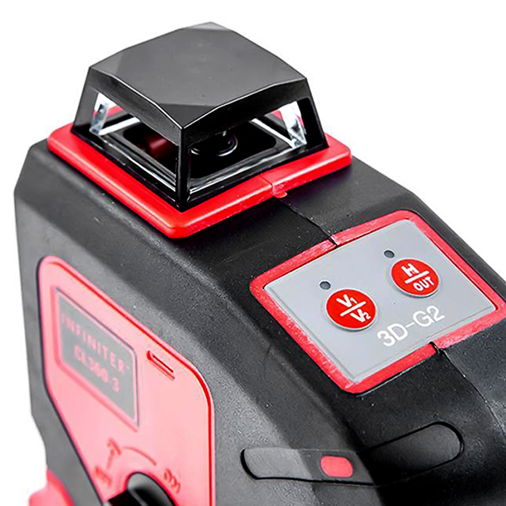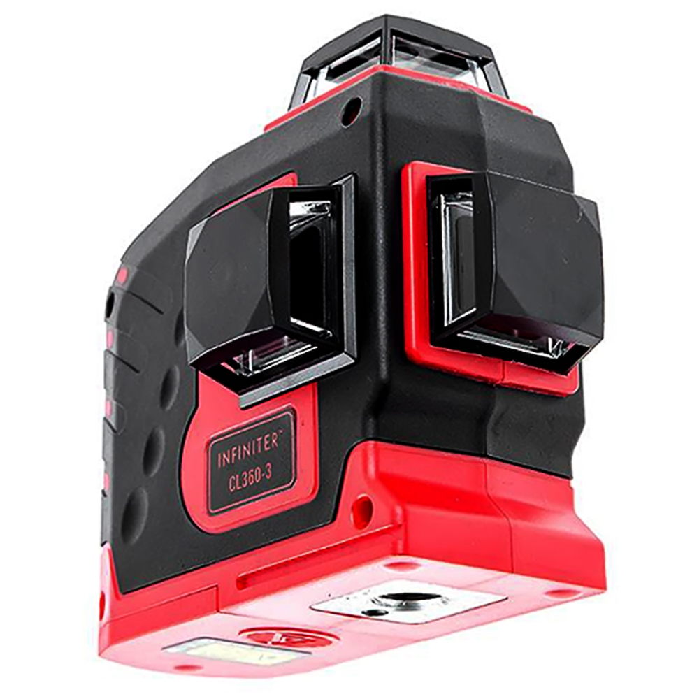 Лазерный нивелир INFINITER CL360-3 проецирует одну горизонтальную плоскость 360° и две ортогональные вертикальные плоскости 360°. Диапазон работы лазера достигает 50 м (с детектором), а погрешность всего 0,3 мм/м. Точки отвеса (зенит, надир) образуются пересечением вертикальных плоскостей.
